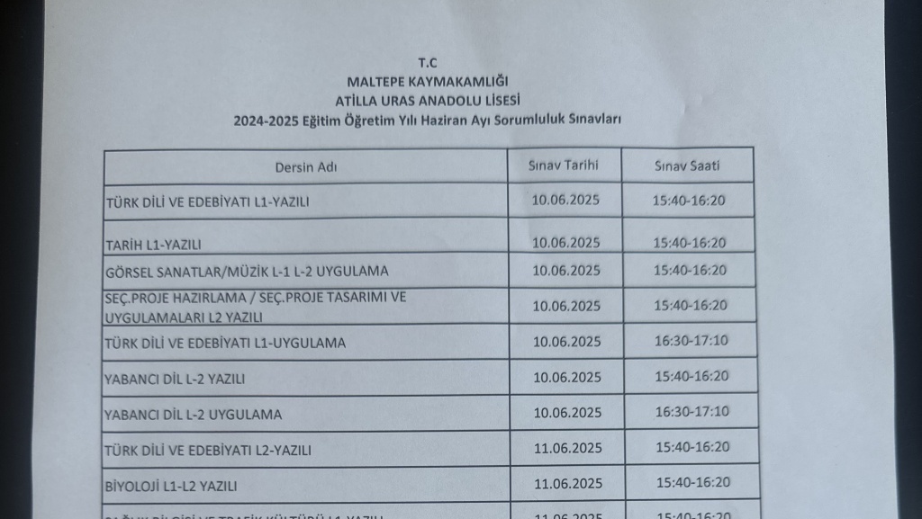 Eylül 2025 Sorumluluk Sınavları Takvimi